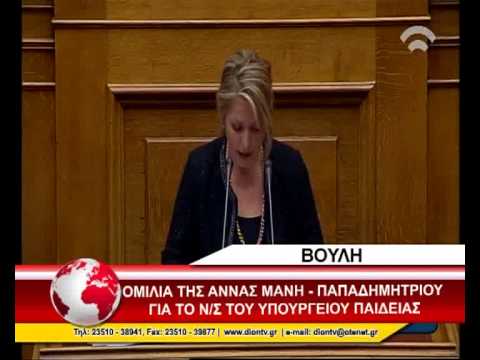 Ομιλία της Άννας Μάνη - Παπαδημητρίου στη βουλή για το Ν/Σ του υπουργείου παιδείας (ΒΙΝΤΕΟ DION Τηλεόραση)